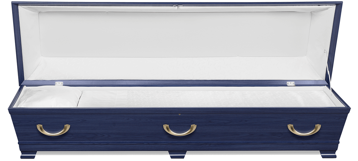 Azur, en kista som inspireras av himlens och havets fridfulla blå nyanser, erbjuder en elegant och värdig sista vila. Den stilrena designen med vackra mässingsfärgade handtag skapar en tidlös elegans som passar perfekt för att hedra den avlidnes minne.
