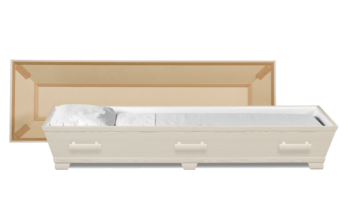 Enkel plus är en lite större och längre kista än standard. Kistan är gråfolierad och tillverkad av spån- och MDF-skiva.